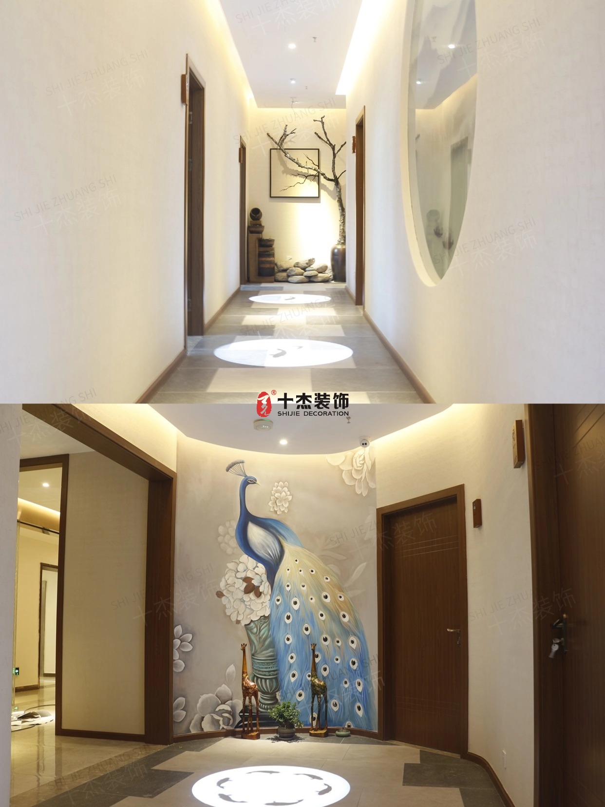 艺术款:孔雀壁画 + 对称摆饰→ 进门被艺术感轰炸