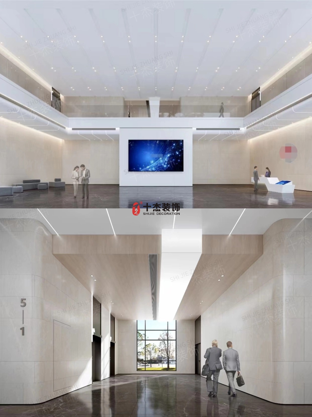 挑空大堂搭配科技感LED大屏