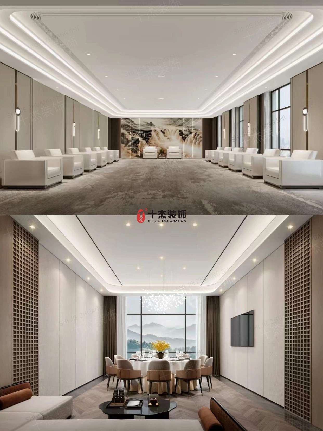 新中式接待室:山水意境画+精致茶具,让商务洽谈更有温度