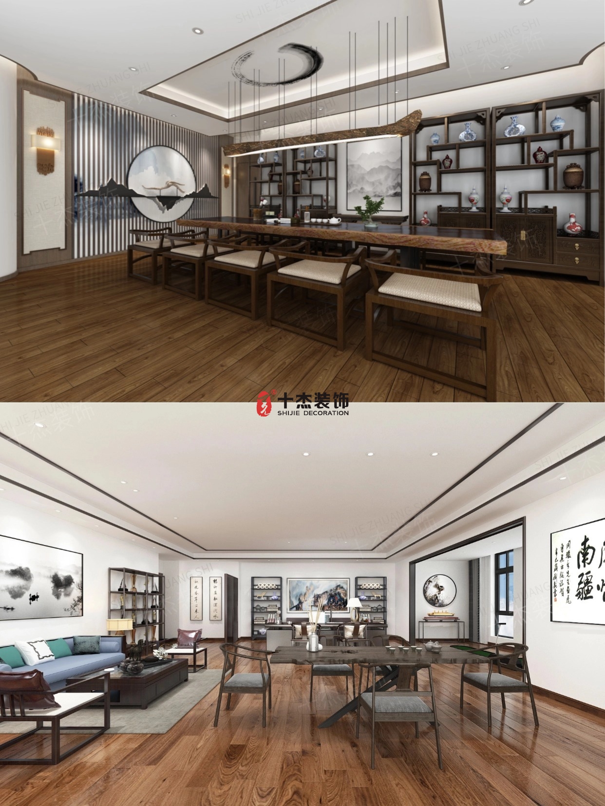 水墨挂画、极简博古架,少即是多的布局,让空间透着文化底气