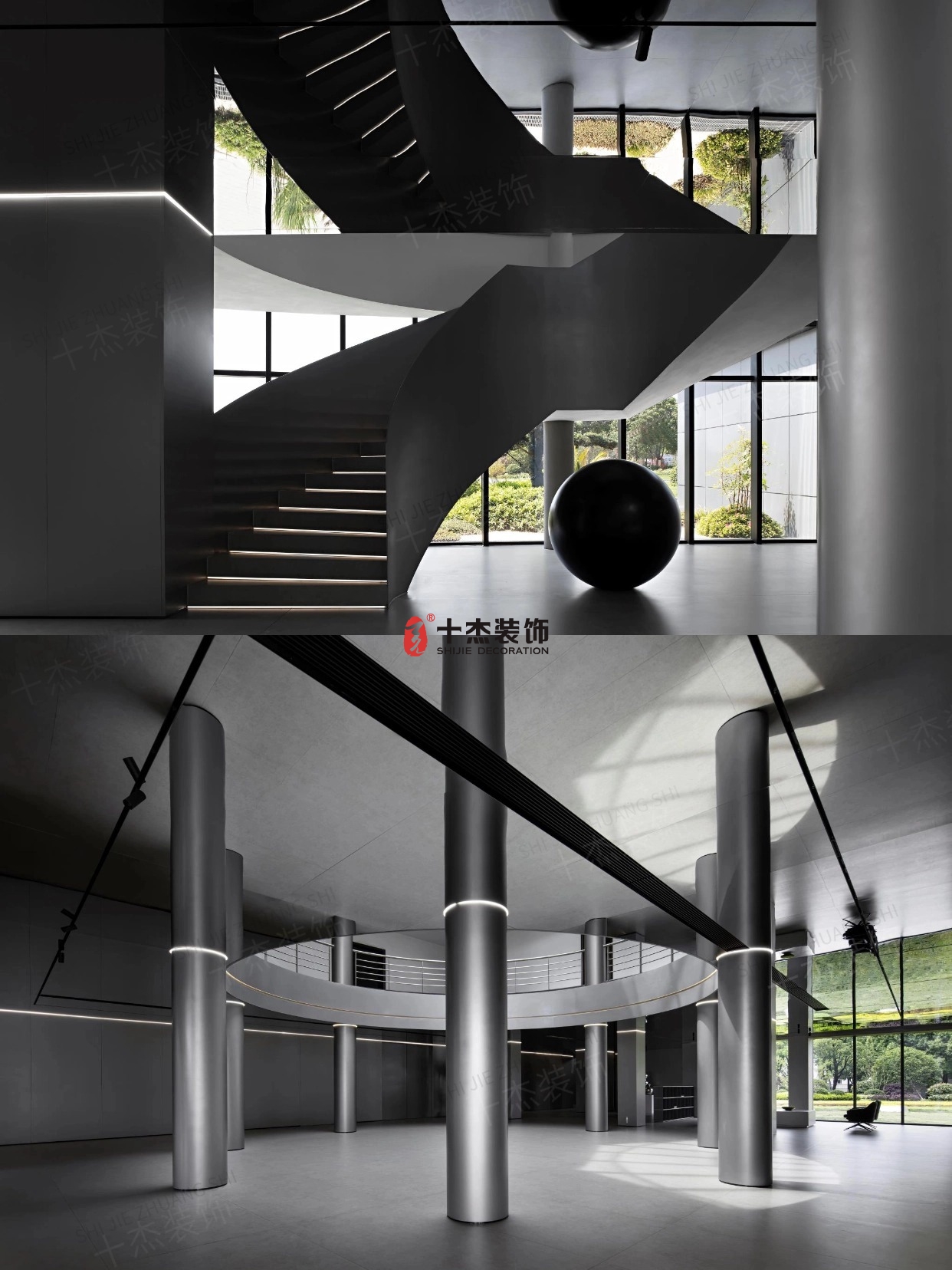 3 米高柱身无缝拼接,光打上去像流动的金属