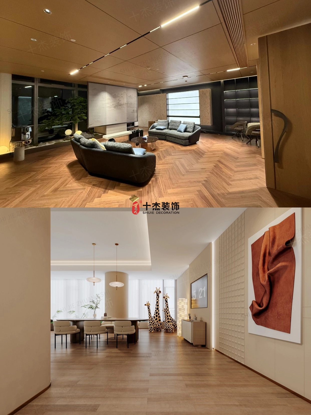 配上弧形沙发和长颈鹿摆件