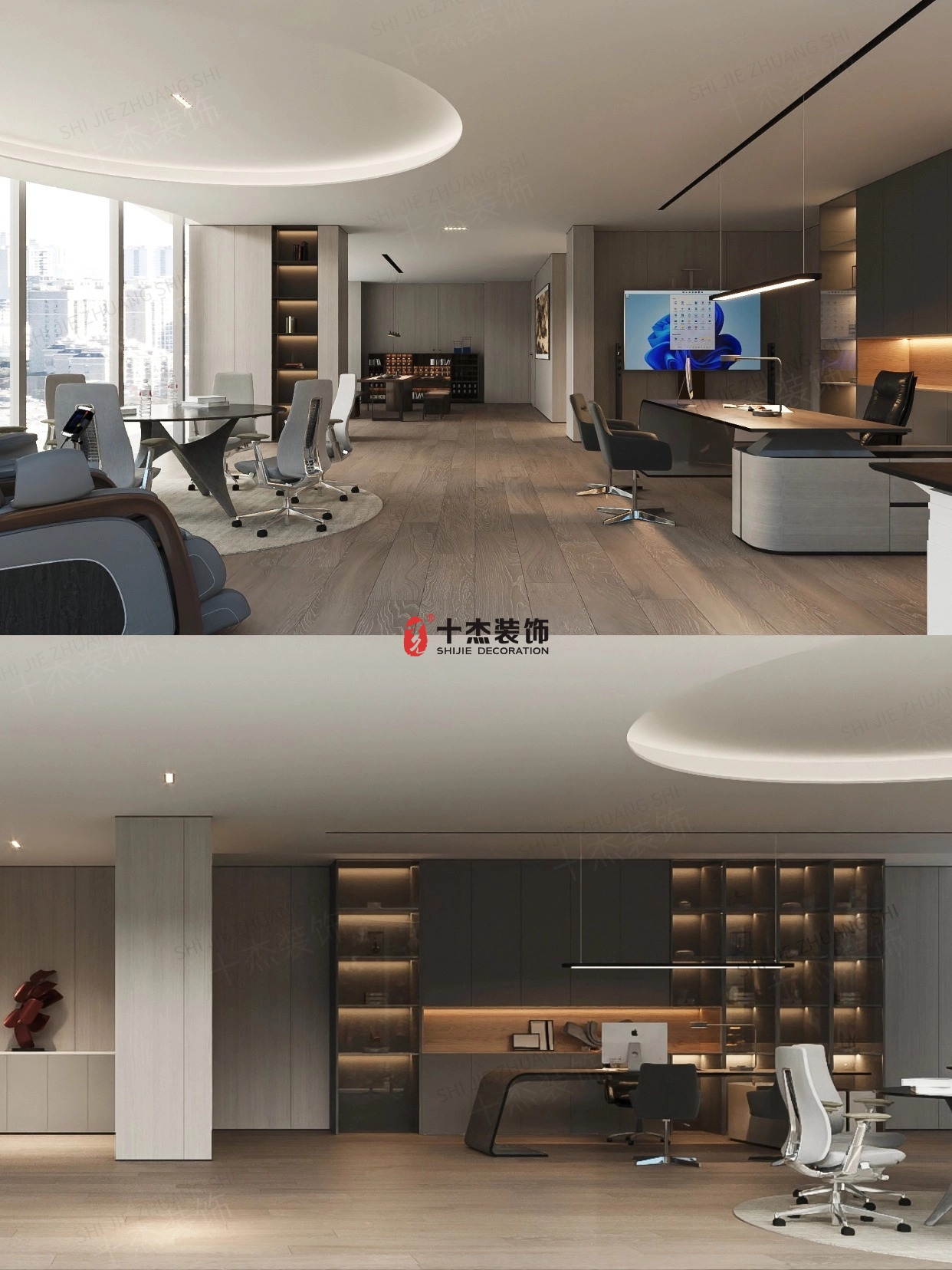 总裁室:悬浮书桌+隐藏式酒柜+全景窗,气场全开,合作都容易谈成