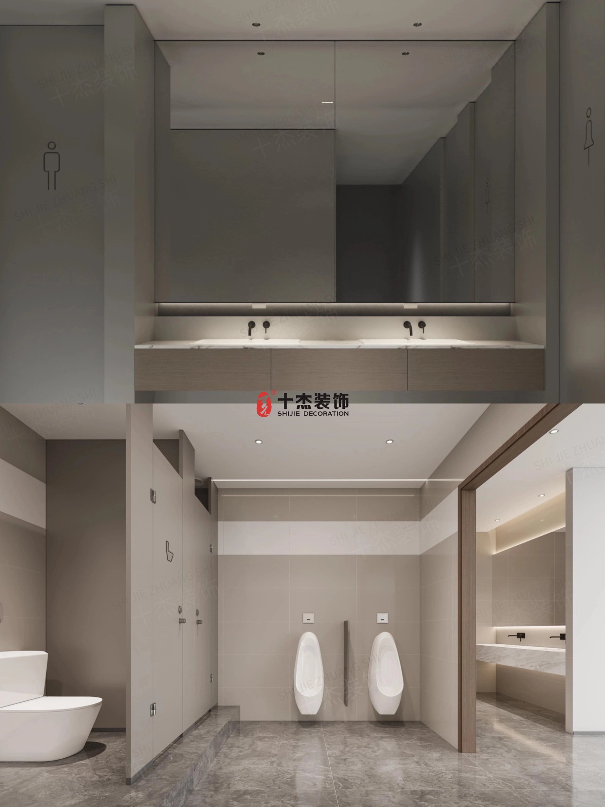 莫兰迪灰 + 柔光石纹台面