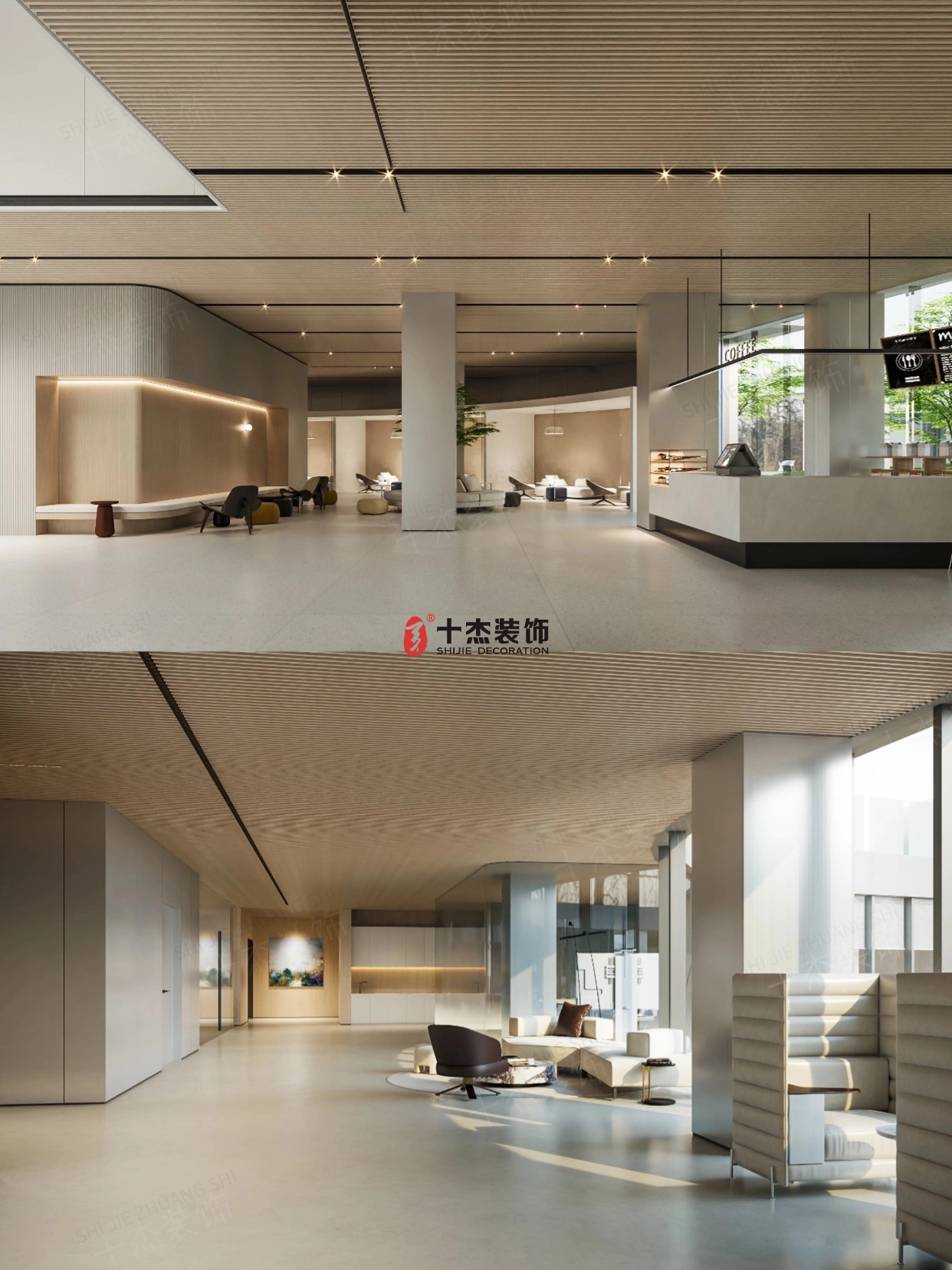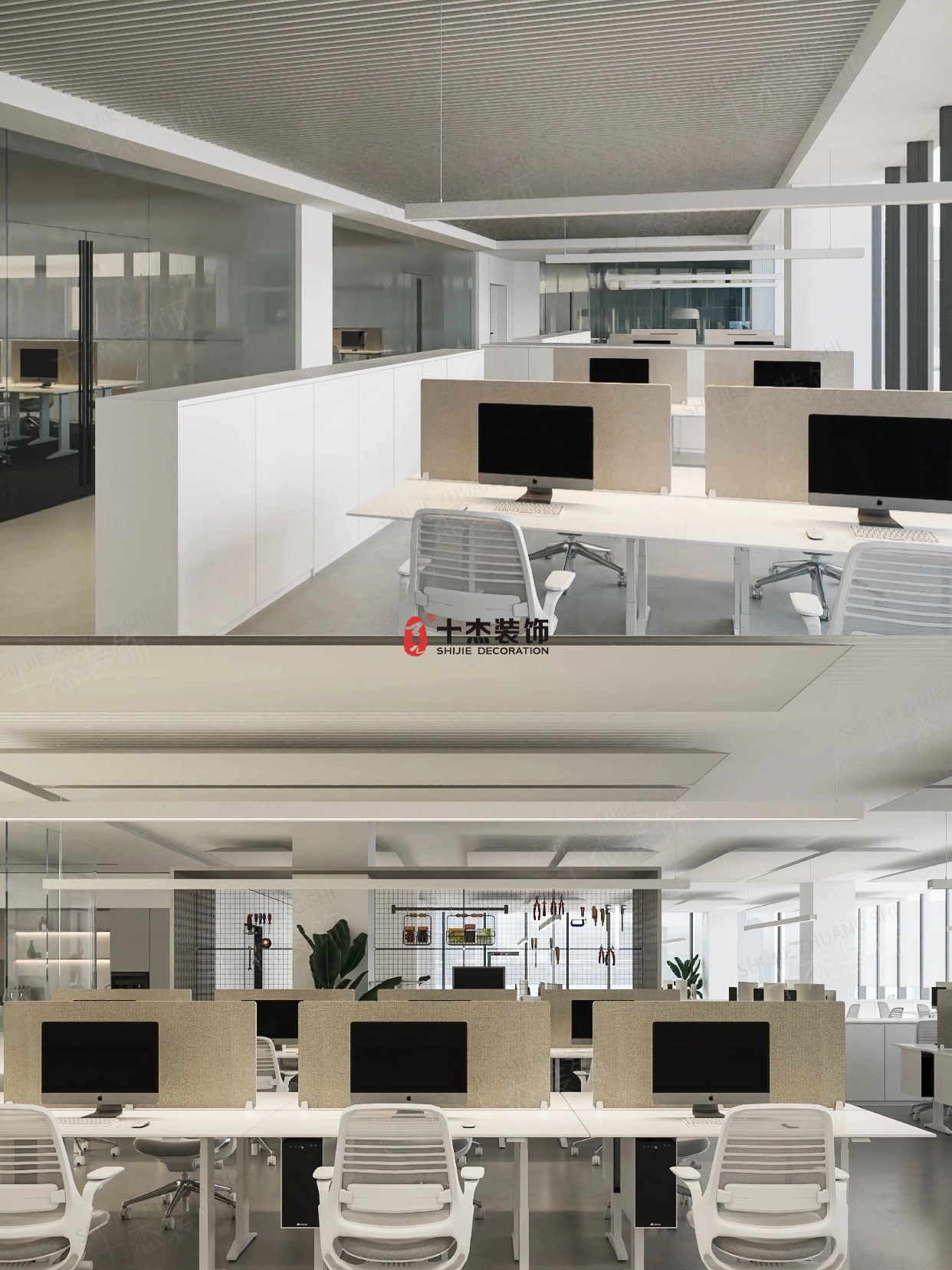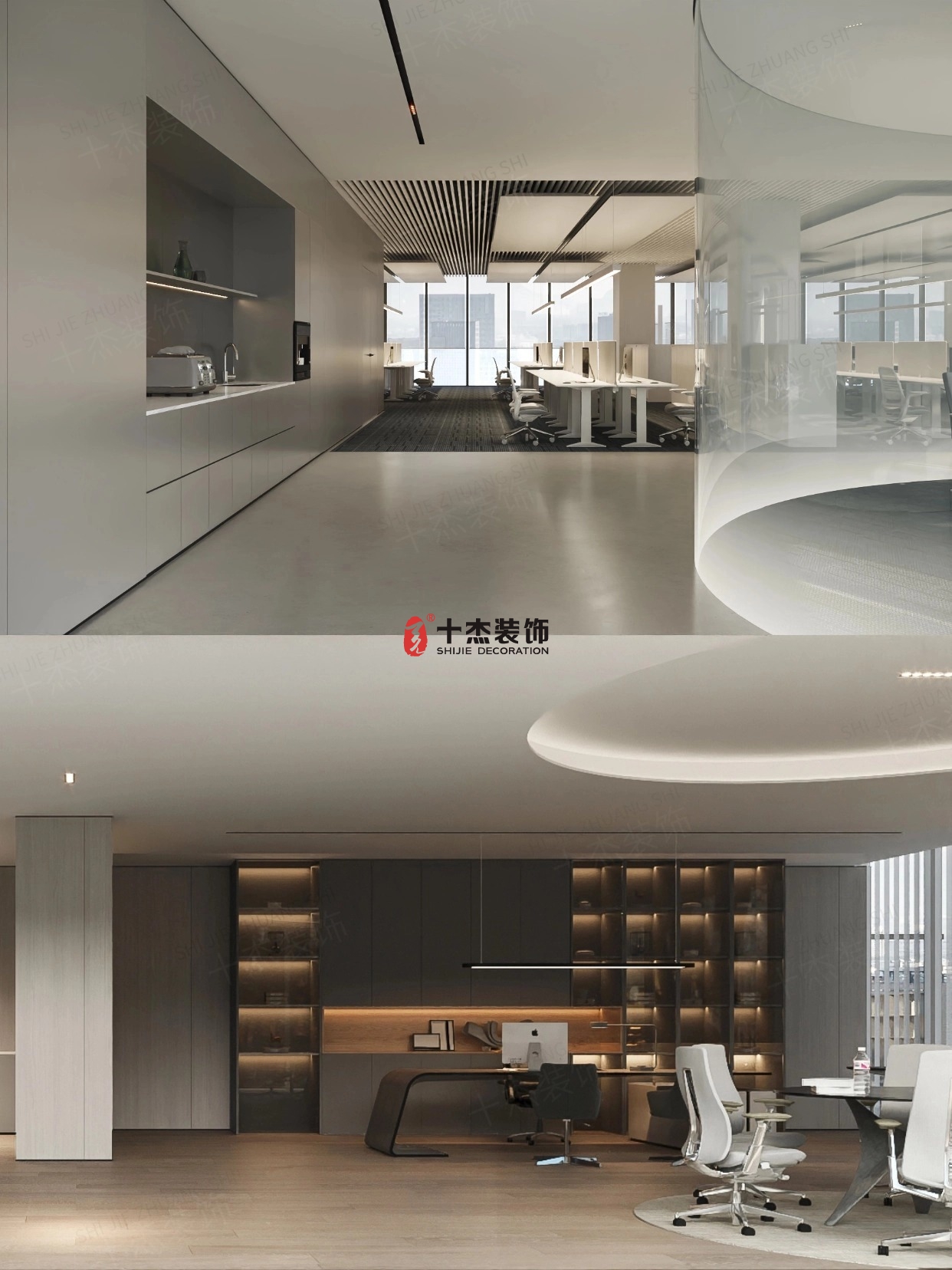 弧形玻璃隔断 / 悬浮吊顶