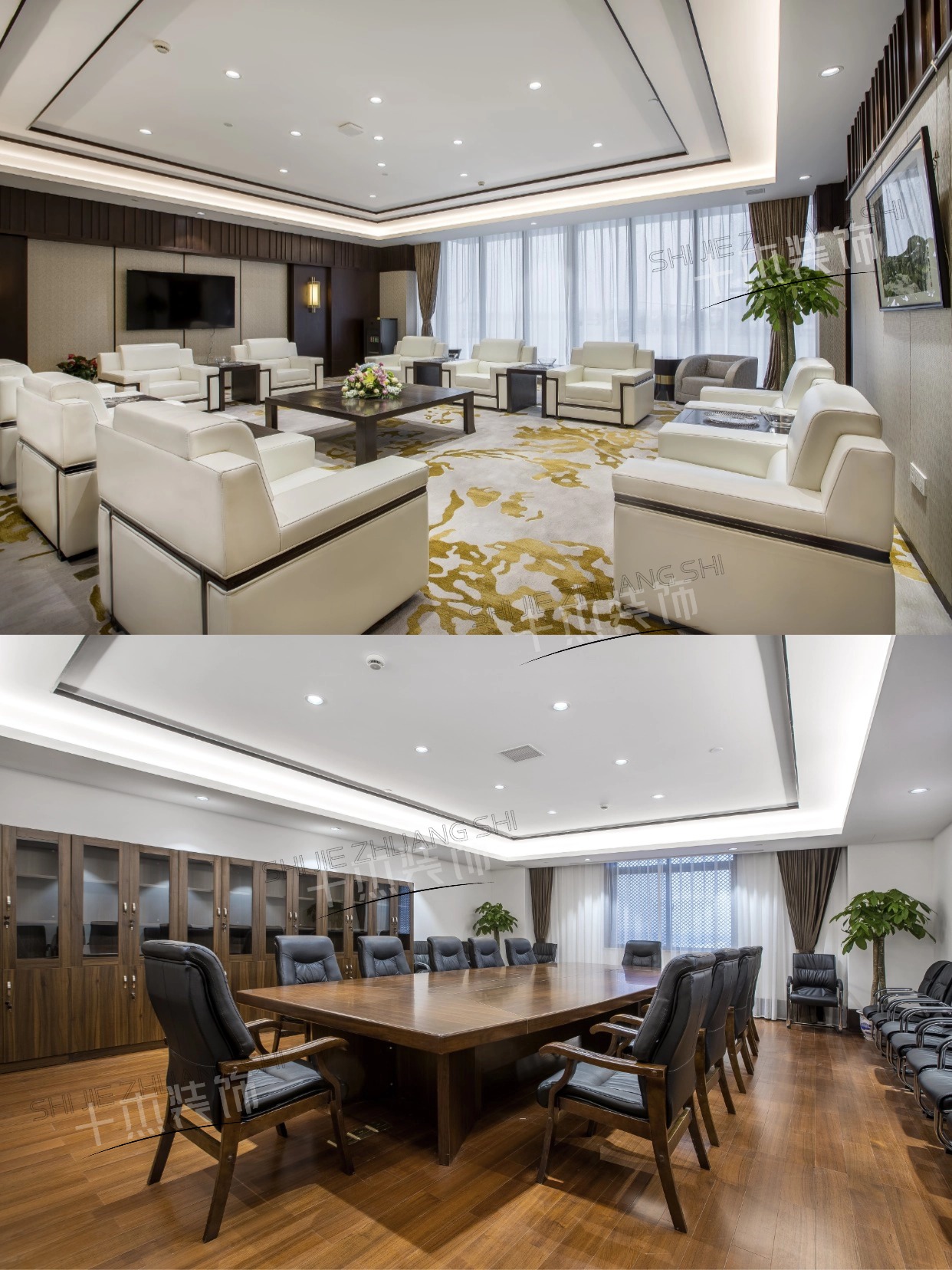 议室以实木与皮质家具构建沉稳专业的办公场景