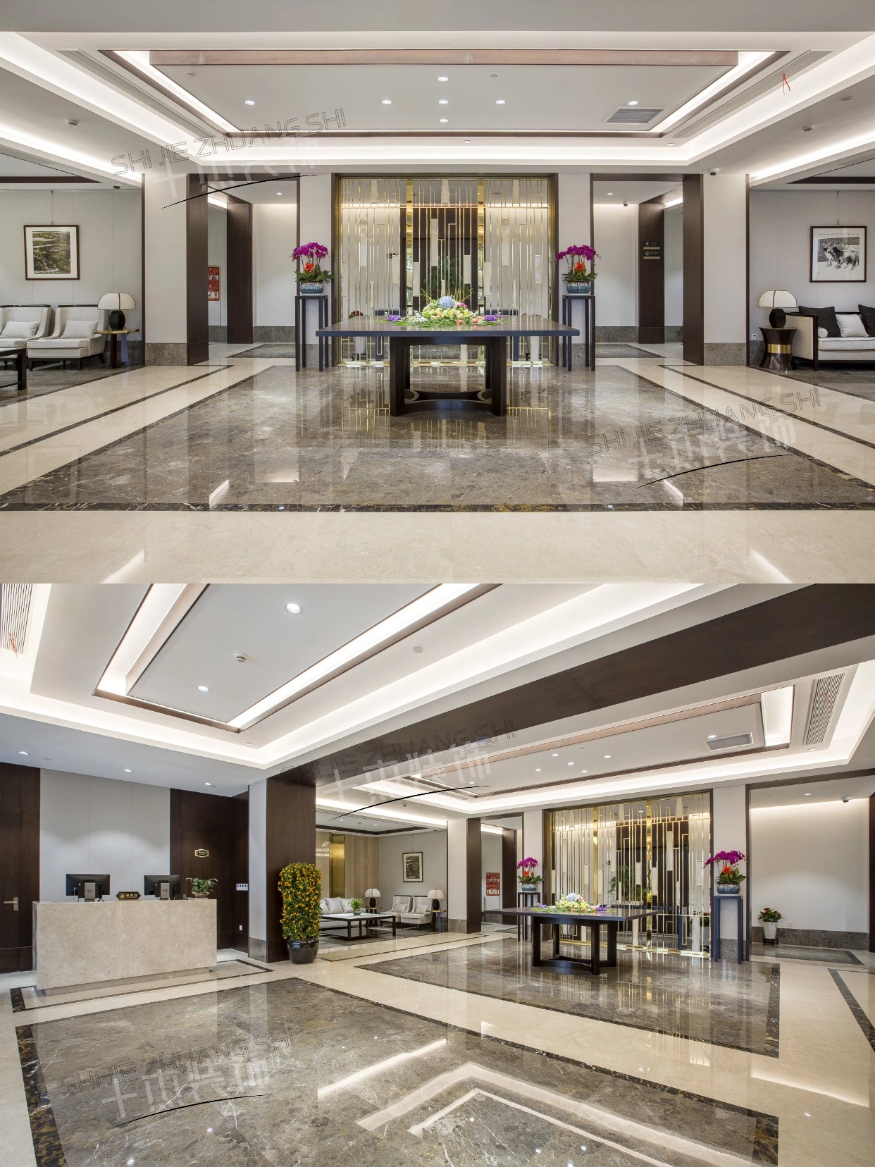 以现代轻奢融合东方雅致,大理石地面纹理精致