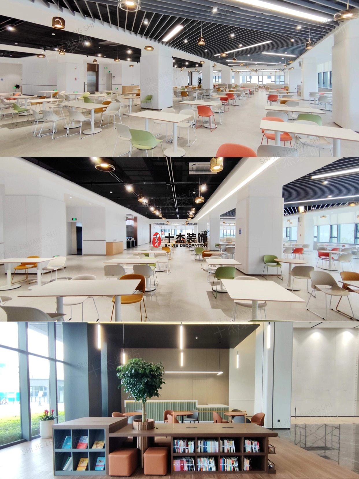 敞开式办公区、员工餐厅采用大通间开放式规划